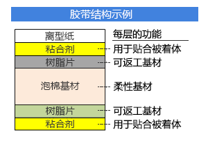 有優(yōu)異應(yīng)力緩沖特性的聚烯烴 (PE) / 聚氨酯 (PU) 基材和強粘合劑結(jié)合在一起的膠帶具有可返工性,進而可以使設(shè)備重復(fù)使用。